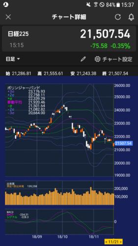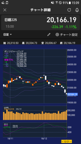 ちょうど1ヶ月前の日経平均225のチャート画像が出てきたので載せてみようと思います