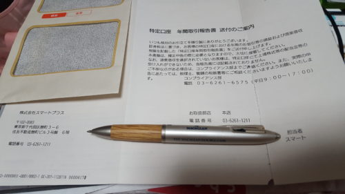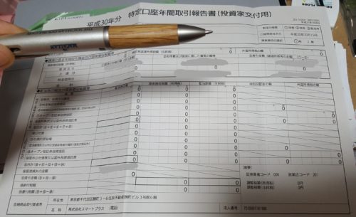 株関連では、優待だの配当だのでない限り郵便が来ないので何だろうと思って開封したら特定口座の年間取引報告書。
